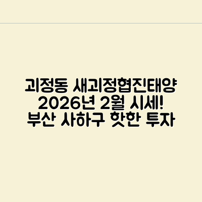 부산시 사하구 괴정동 새괴정협진태양 아파트 2026년 2월 시세