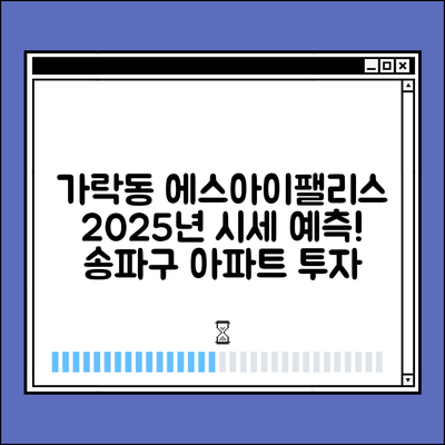 2025년 서울시 송파구 가락동 에스아이팰리스송파포레 아파트의 투자 가치에 대한 우려가 커지고 있습니다. 많은 투자자들이 군중 속에서 어떻게 올바른 결정을 내릴지 고민하고 있습니다.