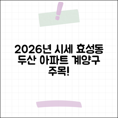 인천시 계양구 효성동 두산 아파트 2026년 1월 시세