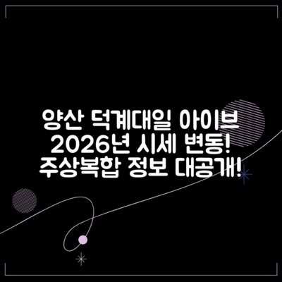 경상남도 양산시 덕계동 덕계대일아이브1차(주상복합) 아파트 2026년 1월 시세